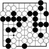 Problem 2. Black to play Simply defending the upper left corner by blocking is not good enough. Black has to play a tesuji that complicates the position. Where is Black's tesuji? |