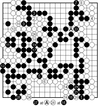 Figure 7 (201–229). White wins. 229 moves. White wins by 5½ points. |
