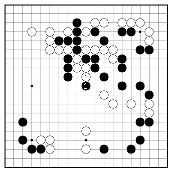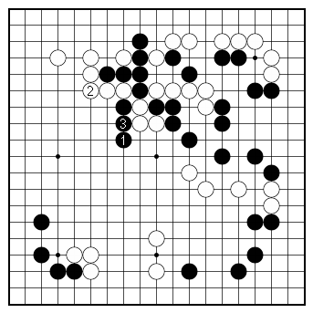 Dia. 2. The one-space jump 1 If White jumps to 1, White captures with 2 and 4, rescuing his six stones at the top. |