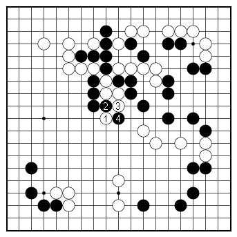 Dia. 7. Trying to link up Black might try to link up with his group on the right, but this ends in failure after White 4. |