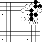 Dia. 6. The solid connection The solid connection of White 1 fails. With the atari of 2, Black makes an eye in the corner and captures two stones without any bad aji. |