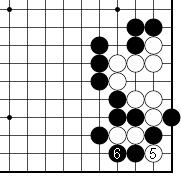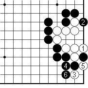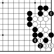 Dia. 2. Forcing Black to capture White ataries with 5, forcing Black to capture with 6. |