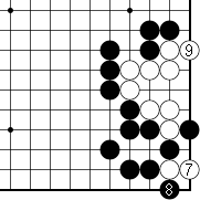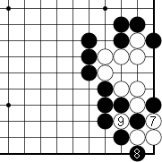 Dia. 6. A ko When White cuts at 7, Black ataries with 8. But when White captures at 9, the result is a ko. |