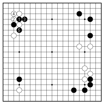 Problem. White to play Black has just played 5, seemingly threatening to capture a stone in a ladder. Just on sight, without playing it out on the board or even running your finger down its path, does this ladder favor Black or White? How should White answer Black 5? |