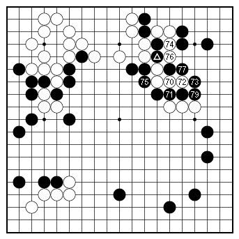 ![]() Figure 3 (70–79) White 78 connects at the marked stone. |