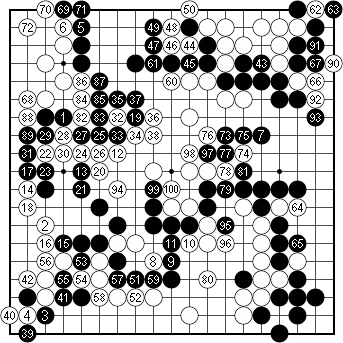 251 moves. Black wins by 1½ points. The move-by-move game record can be found at Yokutsuka versus Seto |
